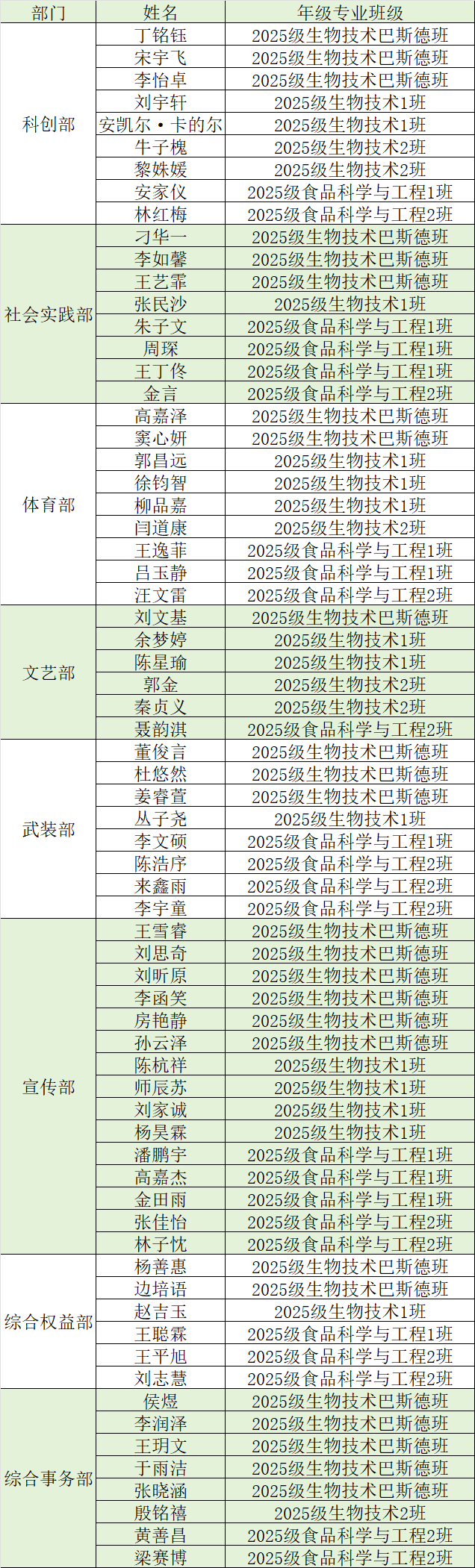2025级学生会志愿者名单,现公示如下: