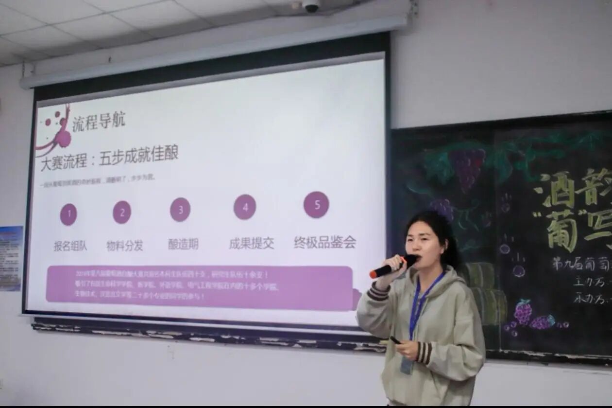 特举办第九届“酒韵校园,‘葡’写华章”葡萄酒自酿大赛。本次大赛宣讲会于10月15日19:00在博学楼101室顺利举行。